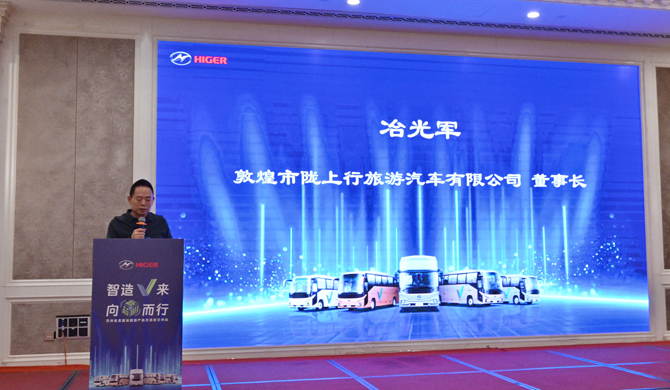 敦煌市隴上行旅游汽車有限公司董事長冶光軍在交流會上表示,“今年6月公司購買了批量9米、17座新V系客車,腿部和頭部空間充足寬裕,再加上風噪、胎噪比較小,舒適感加倍。在新V系的加持下,我們駕駛員收到的錦旗都比以前多了!”